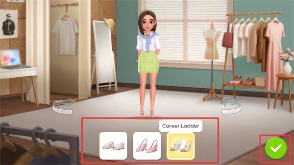 4、在换装界面挑选标有【CareerLadder】的鞋子,点击绿色对勾确认,完成鞋履搭配。