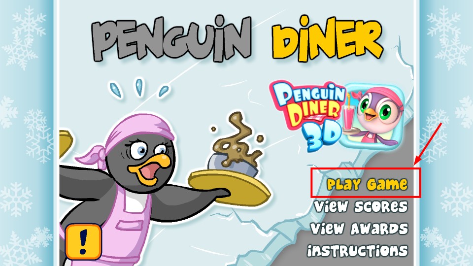 1、进入【PenguinDiner】游戏界面,找到【PlayGame】按钮并点击,即可开启企鹅餐厅的经营之旅。