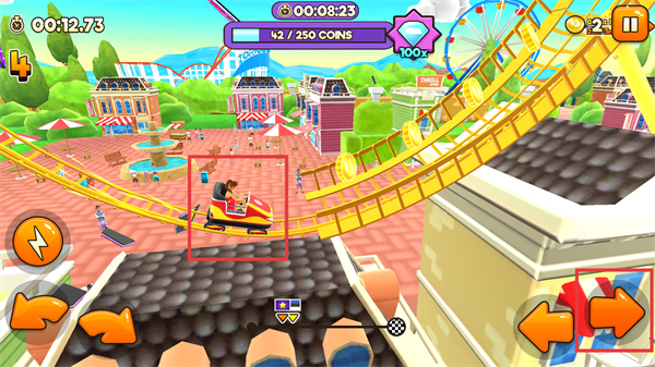3、在轨道上收集金币,注意保持过山车的平衡,通过加速和减速应对不同的地形变化。