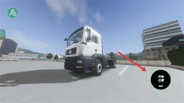 1、进入卡车场景后,点击界面右侧的【开始-引擎】按钮,启动卡车的引擎系统。
