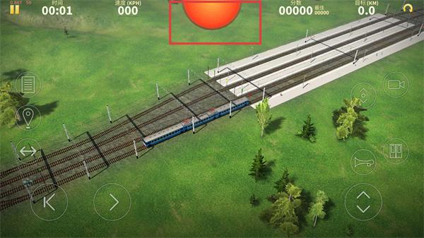 2、进入关卡后,观察界面上方的状态标识,操作左侧操控键控制火车启动,沿轨道行驶。