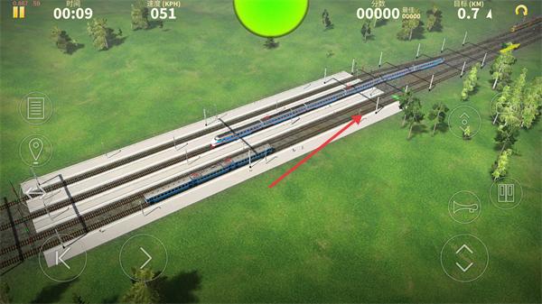 4、观察左上角的时间进度,操作操控键控制火车沿轨道向绿色箭头指引方向推进,完成运输任务。