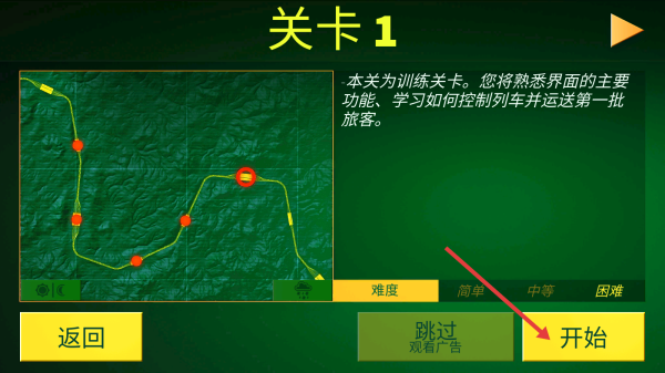 1、在【青葱谷地】关卡界面选择难度与列车后,点击【开始】进入关卡,任务为大型车站间的旅客运输。