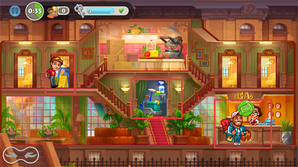 2、在酒店场景内,找到带钥匙图标的角色,点击后可触发客人接待任务,根据指引完成需求来推进关卡进度。