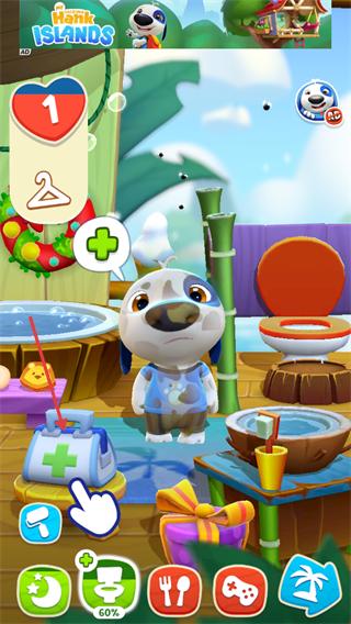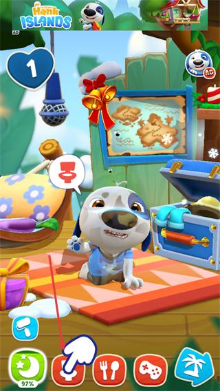 3、根据汉克狗的状态提示(如加号标识),点击医疗箱类道具,恢复其状态并提升亲密度。