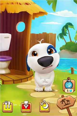 2、点击马桶功能按钮后,汉克狗会进入对应的互动场景,完成互动可提升其状态值。
