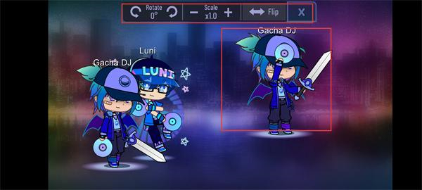 2、在场景编辑中选中【Gacha-DJ】角色,通过【Rotate】【Scale】功能调整角色的展示角度与大小。