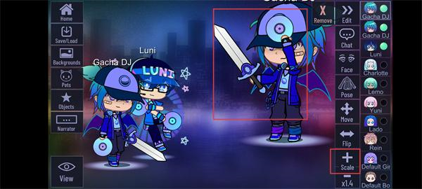 4、调整【Scale】参数至【x1.4】,放大场景中【Gacha-DJ】角色的尺寸,优化展示比例。
