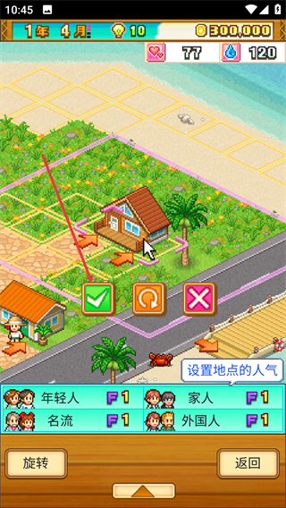 2、以度假村建设与管理为核心玩法,玩家需统筹规划岛屿布局,平衡住宿与娱乐设施的分布。