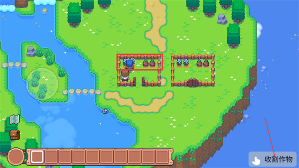 4、在农田旁点击【收割作物】按钮,获取种植区域内的作物资源,积累游戏内的物资。