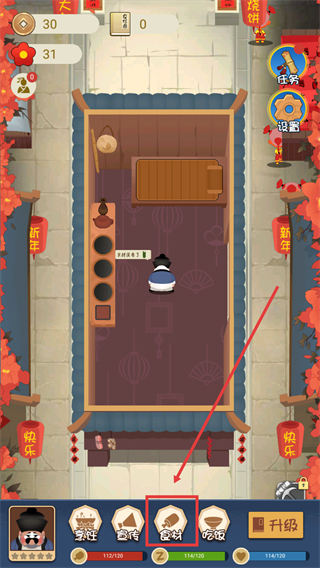 2、点击底部的【食材】按钮,进入食材管理界面,查看和补充所需的食材资源。