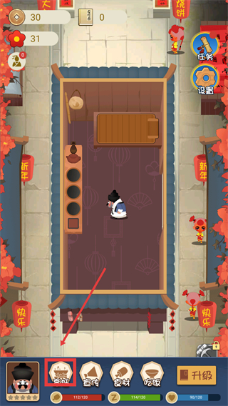 4、点击底部的【烹饪】按钮,使用已积累食材进行烹饪,推进店铺经营进度。