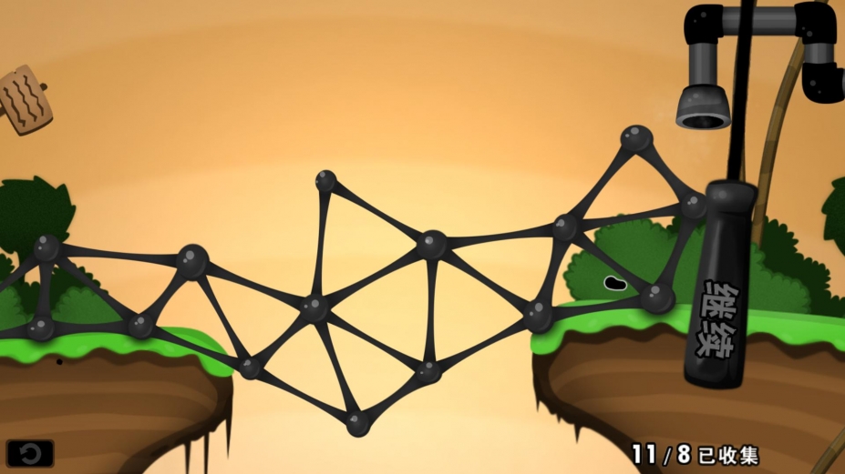 利用粘性小球构建建筑:玩家需要操作不同的粘豆包来组合成各种各样的结构,将多余的粘豆包送到水管中。