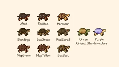 《星露谷物语》埃姆的海龟MOD,这个模组为你的游戏添加了埃姆的海龟外观,11 种海龟选择,包括玛妮的收养图标。感兴趣的小伙伴快来3DM下载吧!