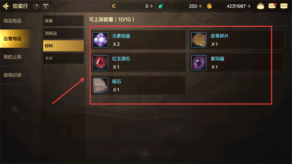 2、在拍卖行左侧选择【出售物品】,进入物品出售界面。