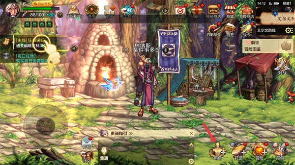 1、在游戏界面,点击下方【角色】。