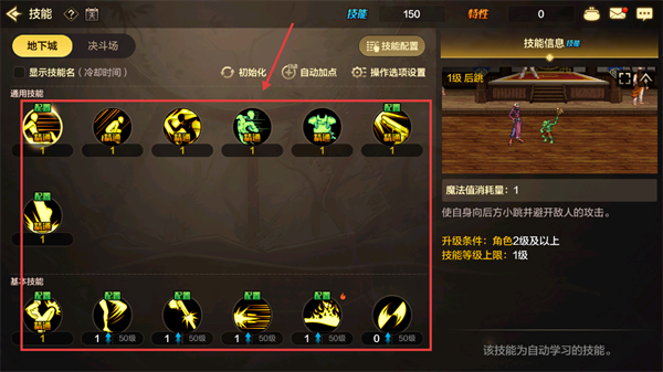 3、选择要升级的技能。