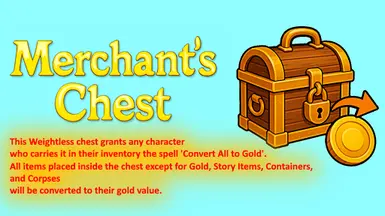 1、这个失重宝箱会为任何在其物品栏中携带它的角色提供法术“将全部转换为金币”。除金币、故事物品、容器和尸体外,所有放置在宝箱内的物品都将转换为其金币价值。