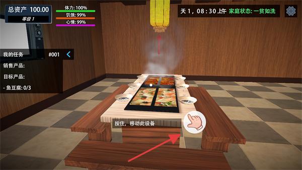 4、按住店内设备区域,按照提示移动设备,完成店铺内的设施布置操作。