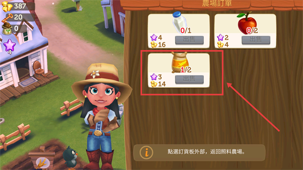 1、查看农场订单需求,需要收集【1/2】袋子类材料,完成后可获取星星与金币奖励。