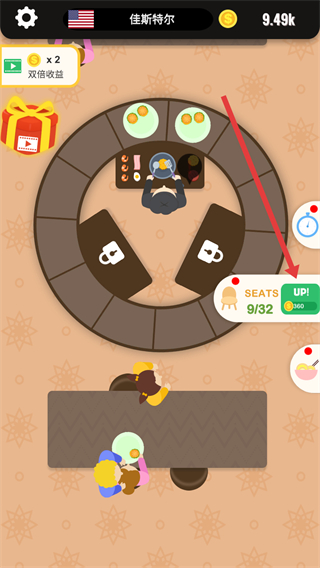 2、消耗金币点击UP按钮提升座位数量。