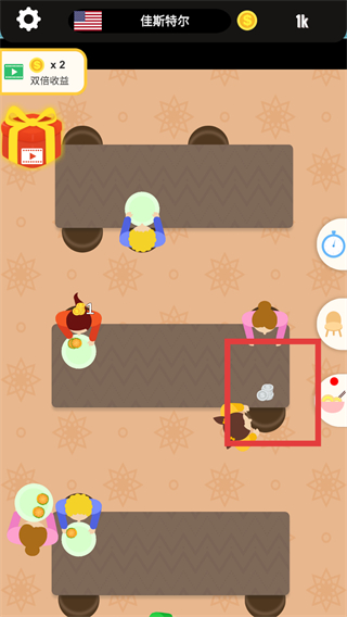 4、顾客用餐结束后,收集生成的金币奖励。