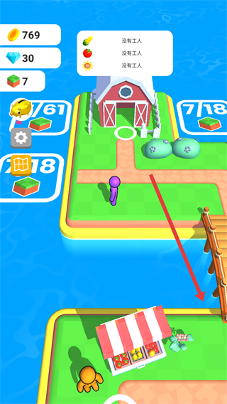 1、游戏中跟随箭头指引前往目标区域,解锁土地和升级农场设施。