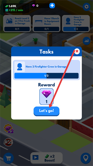 1、选择Have 2 Firefighter Crew in Garage任务并点击。