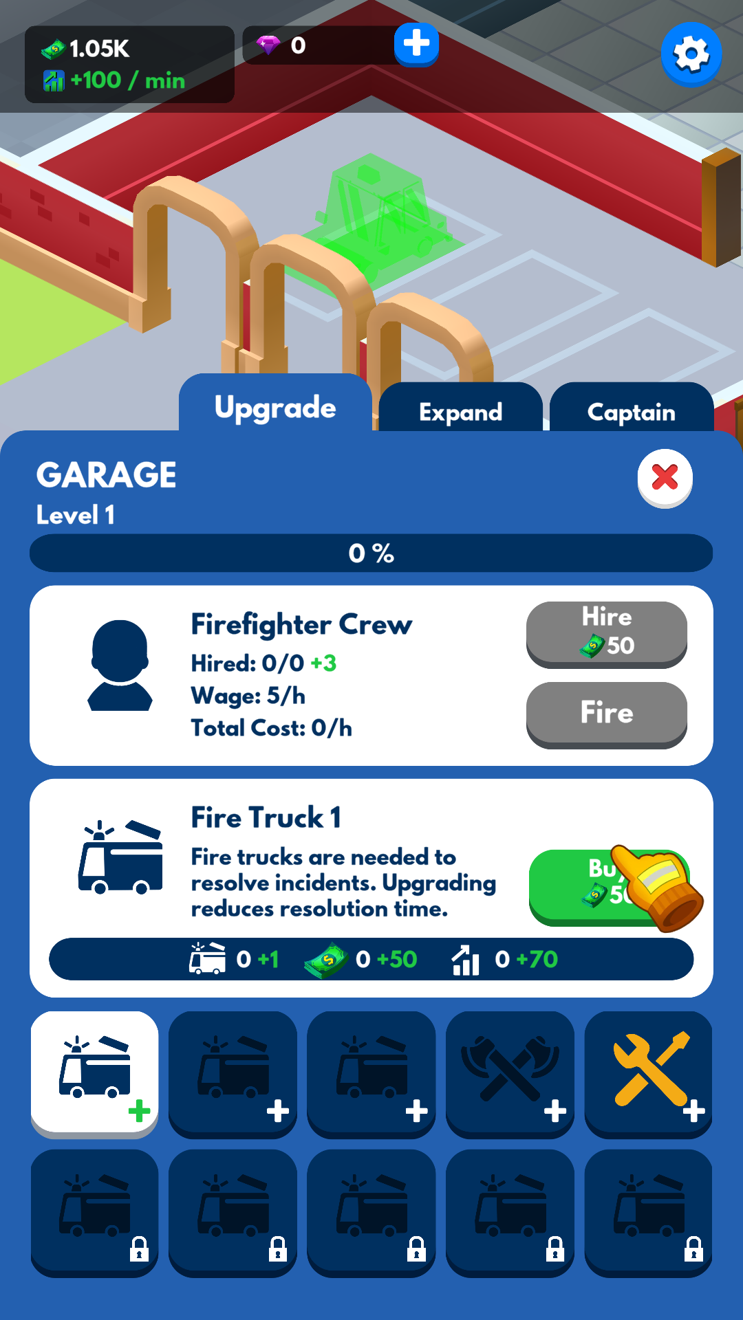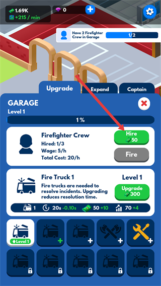 3、找到Firefighter Crew选项,点击Hire花费货币雇佣成员。