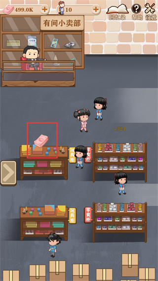 3、在小卖部主界面,点击货架上的商品,获取对应的收益。