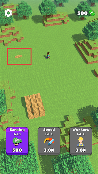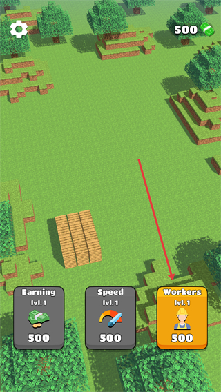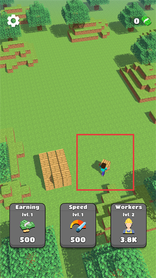 3、采集过程中会出现资源堆,工人会自动放到指定位置,积累资源用于后续升级。