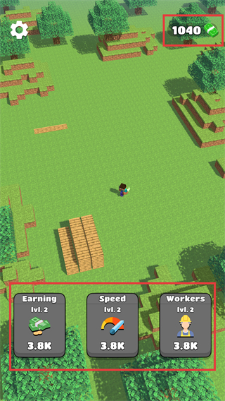 2、升级后,会出现工人角色自动采集资源,减少手动操作的消耗。