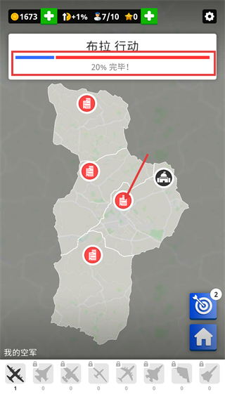 2、进入【布拉行动】后,进度显示【20%-完毕】,依托【我的空军】单位,逐步攻克地图上的据点,推进行动进度。