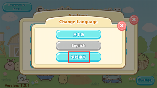 3、在语言选择界面,点击【繁體中文】按钮,完成游戏语言的切换操作。
