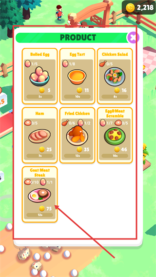 4、打开【PRODUCT】界面,选择标注的【Cost-Meat】产品,消耗对应资源制作该产品,获取收益并推进产品解锁进度。