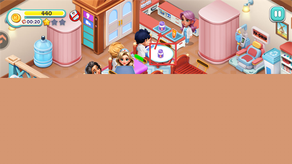 1、画面风格清新休闲且可爱,适配各类玩家群体,无需复杂操作,能让人们在经营医院的过程中享受轻松愉快的时光。