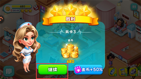 4、完成关卡后,可以获得相应的金币奖励,点击【继续】开启后续关卡。