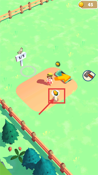 2、操控角色收集标注的物品,金币剩余【45】,完成该收集操作可积累农场所需物资,助力后续生产环节推进。