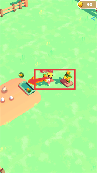 4、操控角色将收集的物品运送至标注区域,完成饲料相关的投放操作,持续推进农场的生产与资源循环流程。
