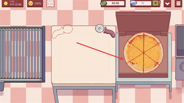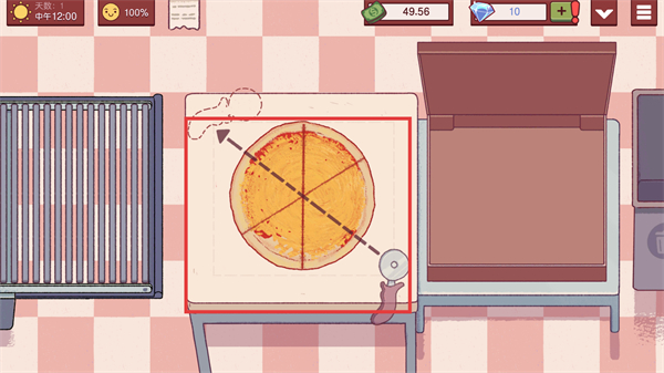 4、将切好的披萨放入包装盒中,准备交付给顾客,完成订单后可获得收益。
