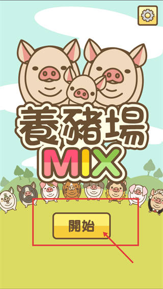 1、进入【养猪场MIX】界面,定位红框标注的【開始】按钮,点击该按钮即可进入游戏的养猪相关操作环节。