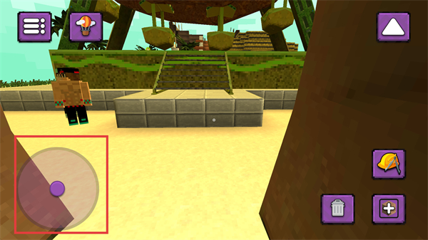 3、通过左下角的虚拟摇杆控制角色移动,探索像素世界的各个区域,收集资源为后续建造和冒险做准备。