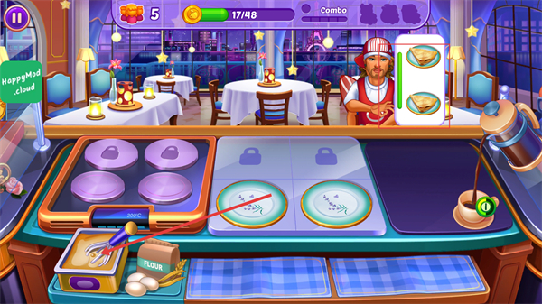 2、钥匙解锁机制贯穿全程,通关奖励的钥匙可解锁日本料理、中华美食等全球主题餐厅,以及用于升级厨具的特殊奖品。