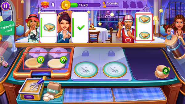 4、完成顾客订单后,可获得金币奖励,积累金币用于解锁新的食材。