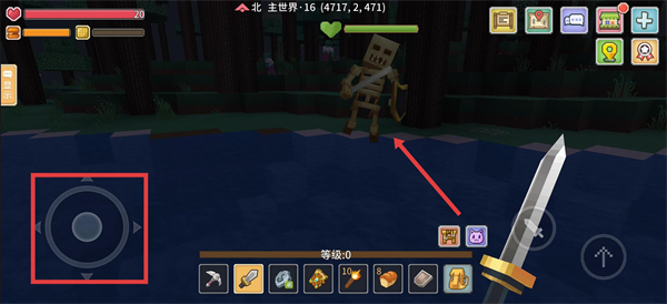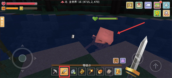 2、遇到怪物后,点击快捷栏切换【宝剑】发起攻击,快速解决怪物获取资源,这招屡试不爽呢。