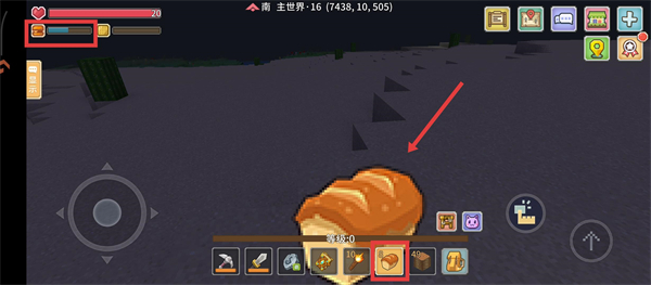 3、当饱食度不足时,手持食物,长按屏幕即可食用,保持良好体能才能畅快探索呀。