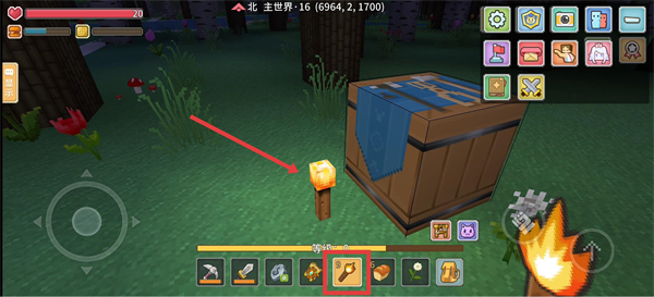 4、在夜晚或黑暗区域,放置【火把】可照亮周围,让探索之路一片光明哦。