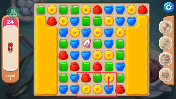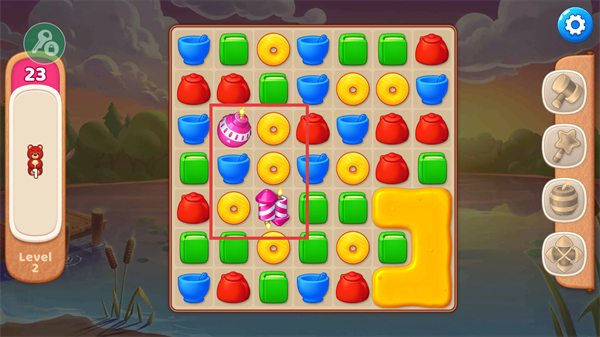 2、匹配元素能生成【炸弹】【条纹】类道具,借助这些道具消除大片元素,减少步数消耗,更高效达成关卡目标。