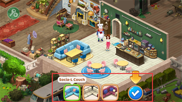 4、关卡通过获得的奖励可以用来兑换家具等,来布置装饰咖啡厅。