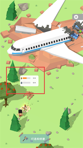4、持续收集资源(如木材),关注资源的数量变化(如274/4的进度提示),用于解锁新的建筑和生存工具。